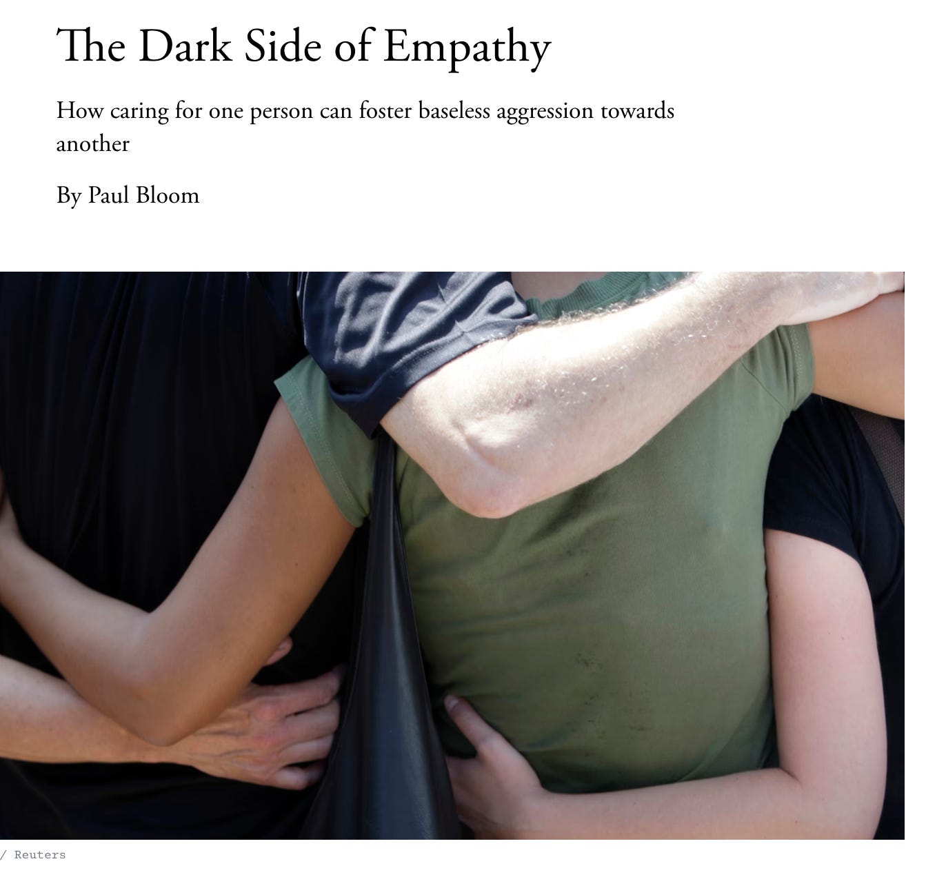 I called Bloom to ask what he made of this development. He distinguished “Against Empathy” from “near neighbors to my view which are just calls for cruelty and bias.”